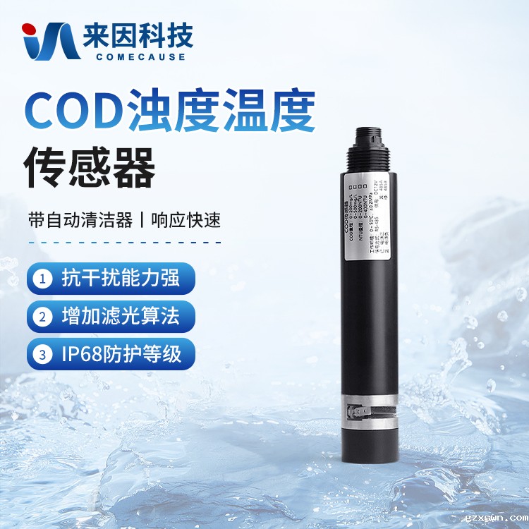 简要描述: 水质在线cod浊度传感器传感器采用两路光源进行测量,一路COD测量,一路浊度测量,因为溶解于水中的有机物对紫外光具有吸收作用,所以通过光源的透射率可以测量出COD数值,一路浊度测量,自动进行浊度补偿,同时采集温度,进行温度补偿。