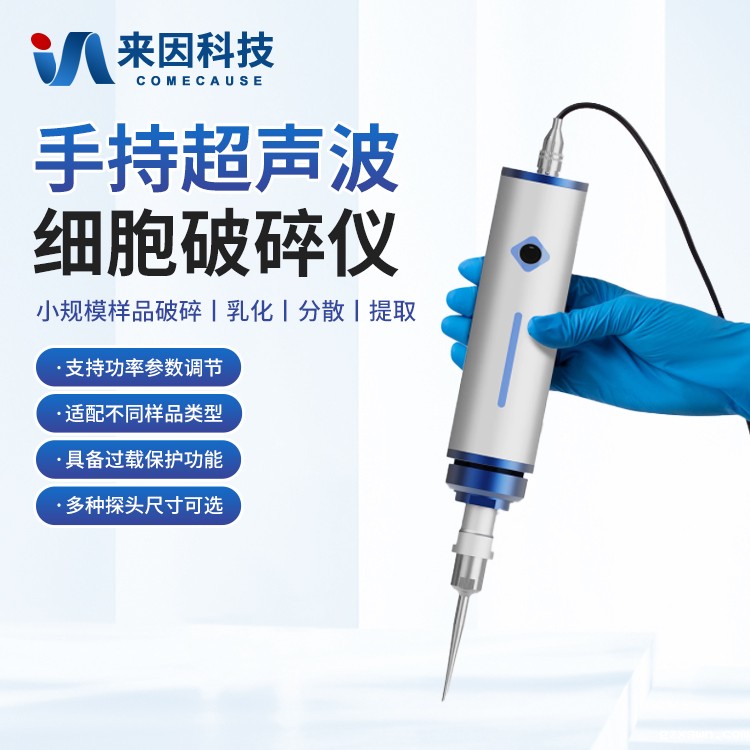 简要描述: 手持式超声波细胞破碎仪是一种便携式、高精度的超声波处理设备,适用于实验室小规模样品破碎、乳化、分散和提取等操作。其一体化设计集成了超声波发生器和换能器,操作灵活,可手持使用或搭配支架固定,适用于生物、化学、材料等领域的高效样品处理。