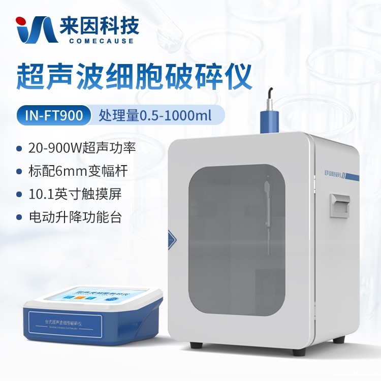 自研自产的超声波细胞破碎仪。功能齐全、外观新颖、性能可靠。仪器采用大屏液晶显示;中央微机集中控制,超声输出、间隙时间、超声功率,样品温度监测显示,频率自动跟踪,故障自动报警等功能。适用于生物化学、微生物学、药物化学、表面化学、物理学、动物学、农学、医学、制药等领域的教学、科研及生产。