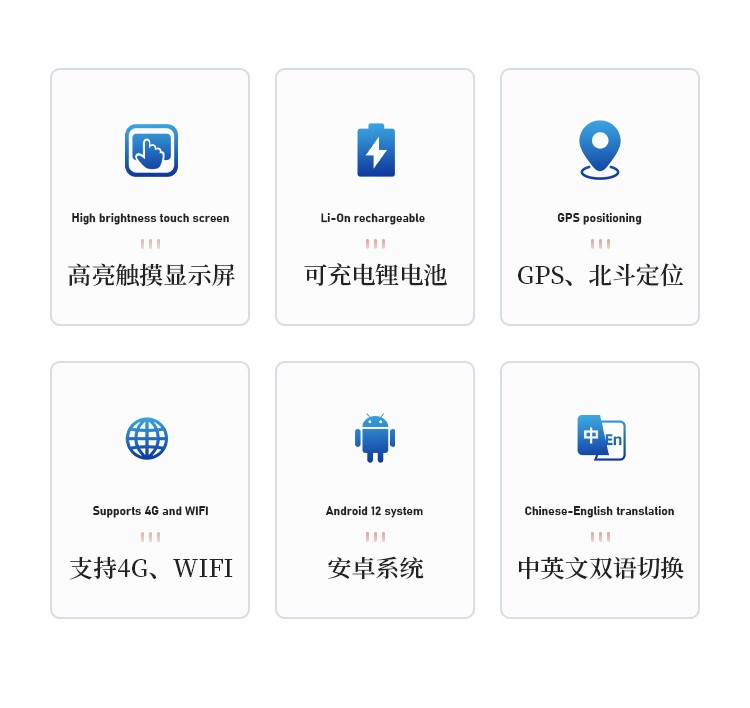 9. 终端配置: 16G运行内存, 256G存储;支持GPS、北斗定位;支持4G网络,蓝牙,WIFI。