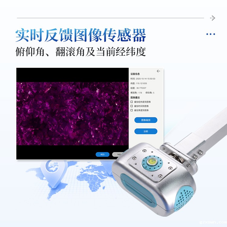 2. 冠层传感器: CMOS 型,标准 RGB 真彩色图像输出,500 万像素,视场角 180°