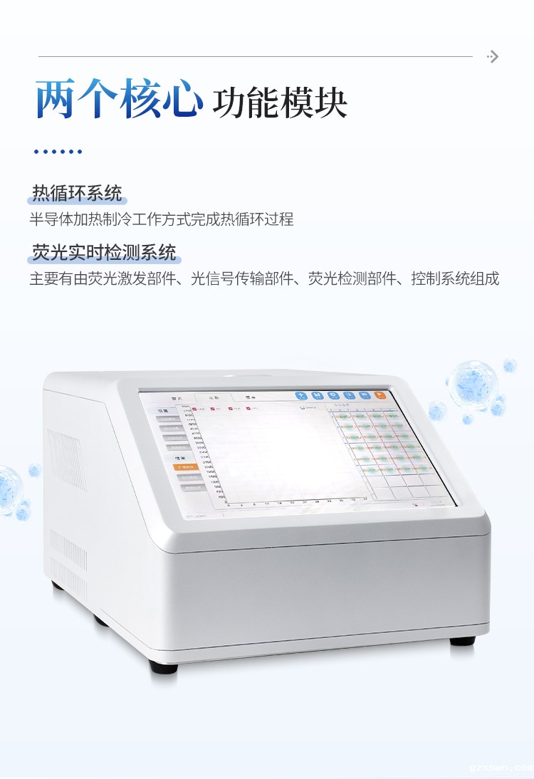 对取于其他动物体内的生物样本(如血液,体液等)中包含的目标核酸,进行快速精准的定性和定量分析,同时也能够对特殊样本进行标准曲线,熔解曲线,基因分型等分析。