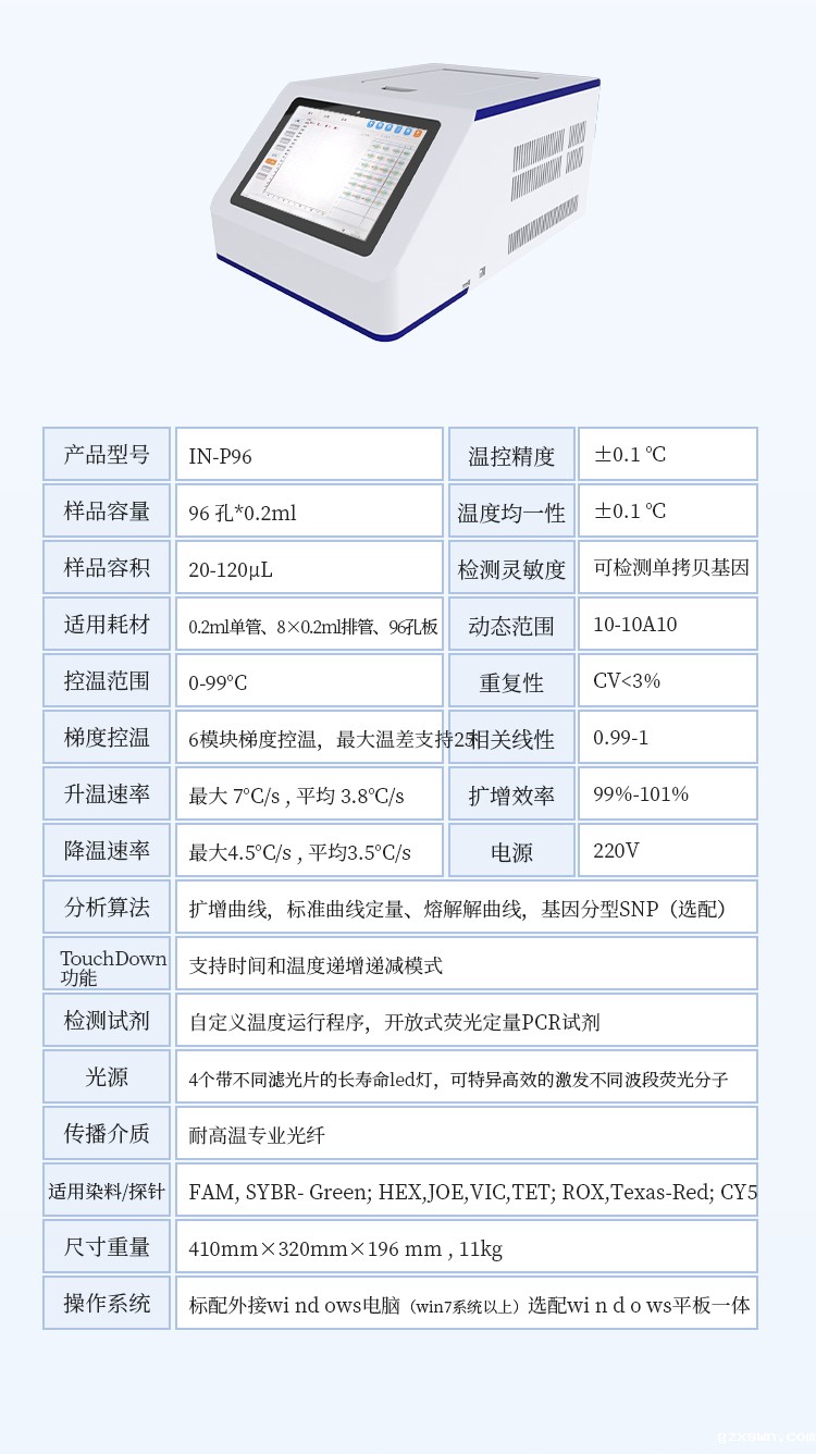 7.软件功能强大:荧光定里 PCR 系统 软件;实时扩增反应曲线功能;特定 标本实时反应曲线显示;实时温度曲 线;数据分析功能;阴阳结果自动判定功能;图形化显示功能等。