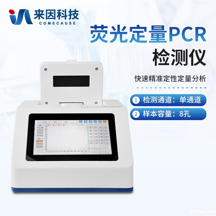 简要描述: 8孔PCR仪主要用于运行实时荧光定量PCR实验,通过荧光激发和采集的方式,对实验过程进行实时监控,将实验过程数据绘制成荧光曲线,实时呈现于仪器显示界面,并对实验数据进行拟合和分析,最后可生成PDF格式的实验报告。
