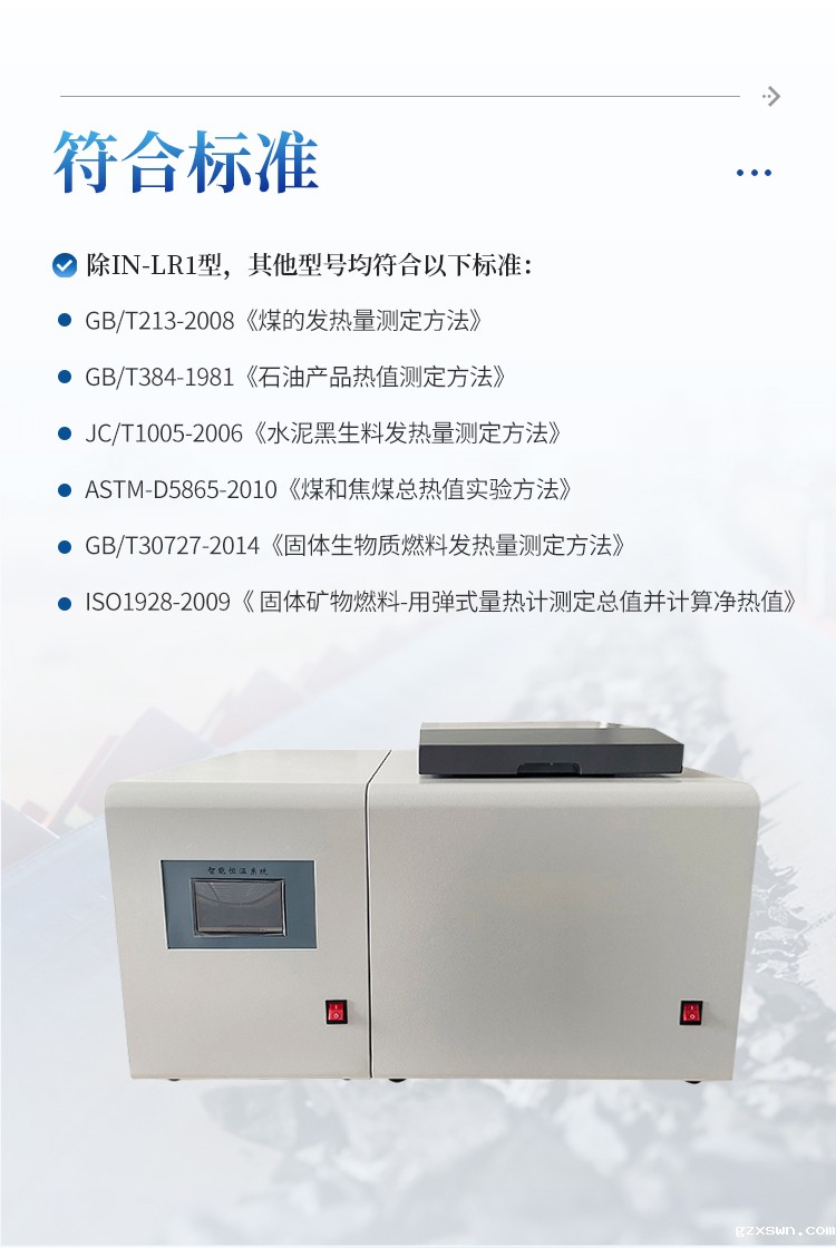 本机是依据GB/T384、 GB/T213标准设计制造的,适用于测定不含水的石油产品(汽油、喷气燃料、柴油和燃料油等)以及煤炭、焦炭、石蜡等可燃性物质的发热量的测定。