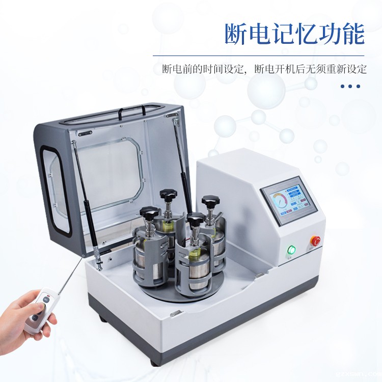 远程遥控:标配无线遥控器,可远距离控制研磨机的启动、停止、加速、减速以及可切换三种运行模式(单向持续运行,单向间隔运行,双向交替间隔运行)