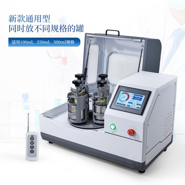 适用研磨罐:本机是新款通用型,100ml、250ml、500ml、1000ml四种规格研磨罐均可使用,可根据客户需求同时放不同规格的罐;对角对称即可(4个研磨罐为一套)。