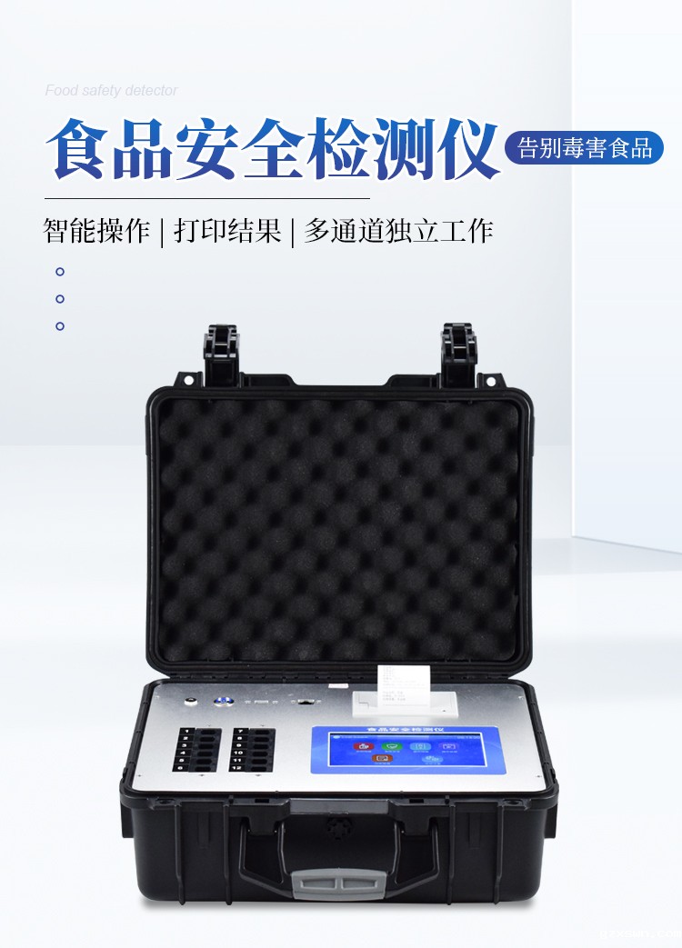 该多功能食品安全检测仪为集成化食品安全快速检测分析设备,广泛应用于市场监管局、检测中心、卫生监督部门、农业部门、院校及各单位食堂、食品肉产品深加工企业、商超市场、司法部门、餐饮机构、养殖场、屠宰场、检验检疫部门等单位使用。