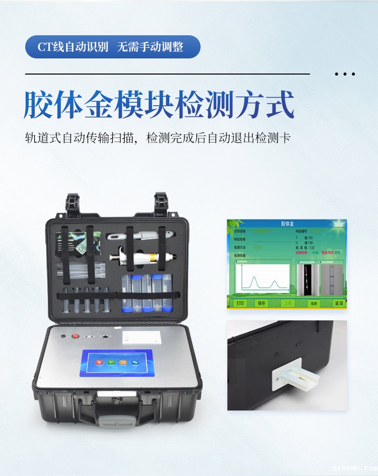 7、胶体金模块检测方式:轨道式自动传输扫描,检测完成后自动退出检测卡。