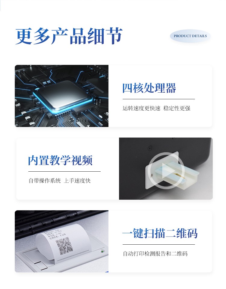 3、新一代高速热敏打印机,检测完成可自动打印检测报告和二维码。