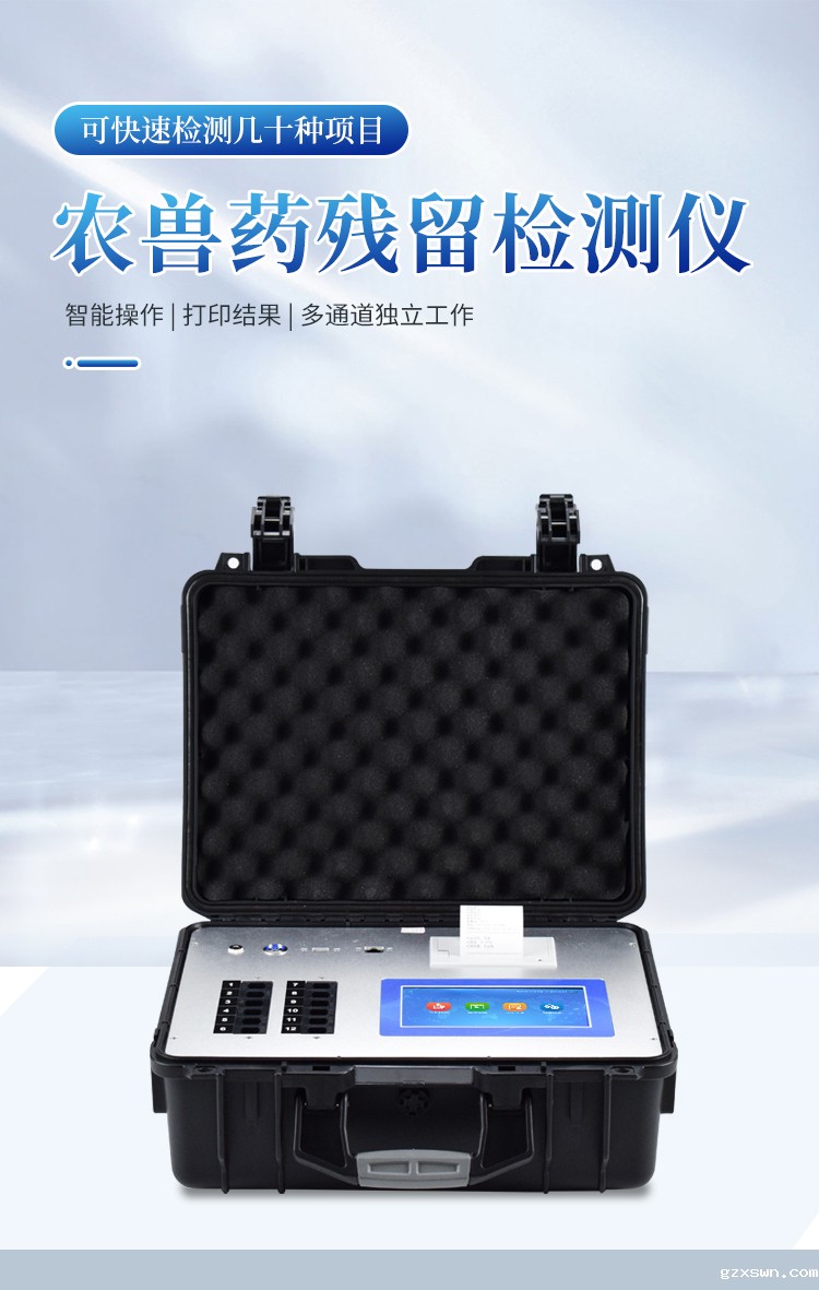 多功能果蔬肉类检测仪可快速检测几十种项目,包含各种蔬菜水果中有机磷、氨基甲酸酯类农药,病害肉诊断:肉类新鲜度、肉中组胺、挥发性盐基氮;各种肉食品中兽药残留:抗生素类残留、瘦肉精激素类残留;水产品安全筛查等现场的定性定量检测。