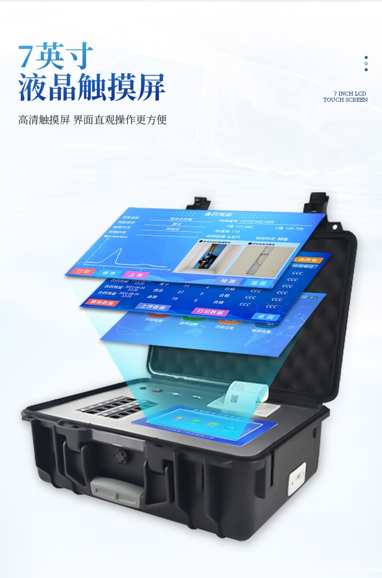 2、显示方式:7英寸液晶触摸屏显示,人性化中文操作界面,读数直观、简单。