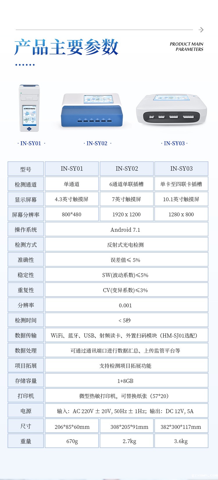11、检测时间:< 5秒 (单卡及多联卡);可对样本进行胶体金定性/半定量检测。