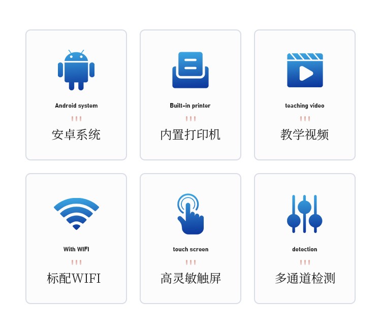 1、安卓智能操作系统,采用更加高效和人性化操作,仪器具有网线连接、wifi联网上传、GPRS无线远传功能,快速上传数据。