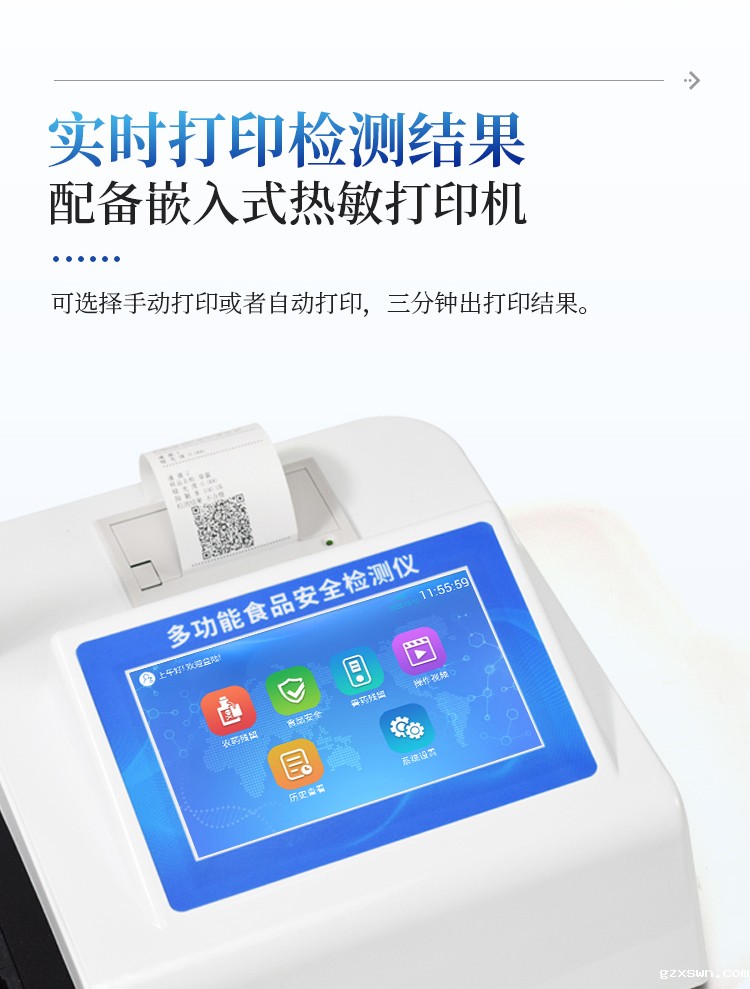 5、配备新一代嵌入式热敏打印机,可选择手动打印或者自动打印,检测完成可自动打印检测报告和二维码。