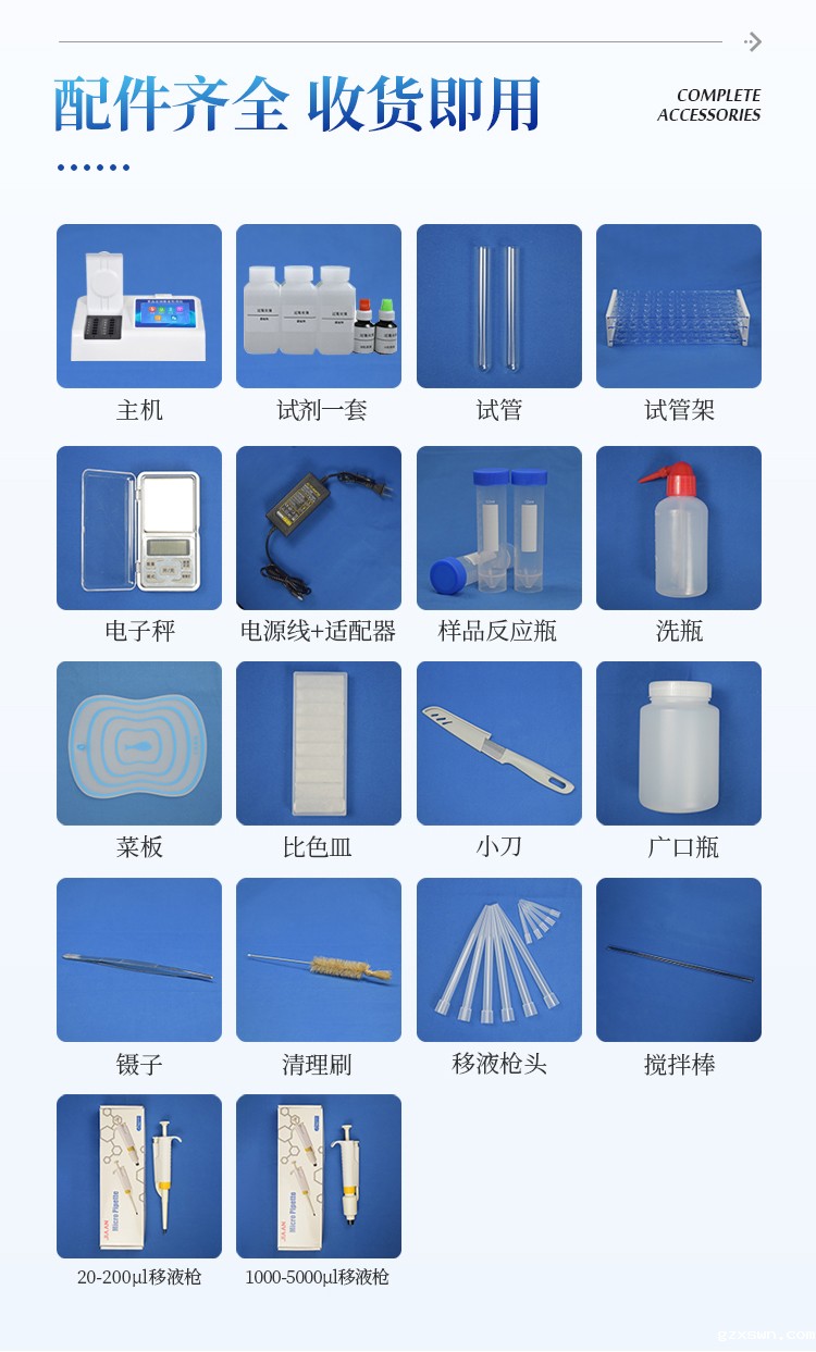 1、农 残: 检出下限:抑制率 5% ,检测范围:抑制率(0~100)%