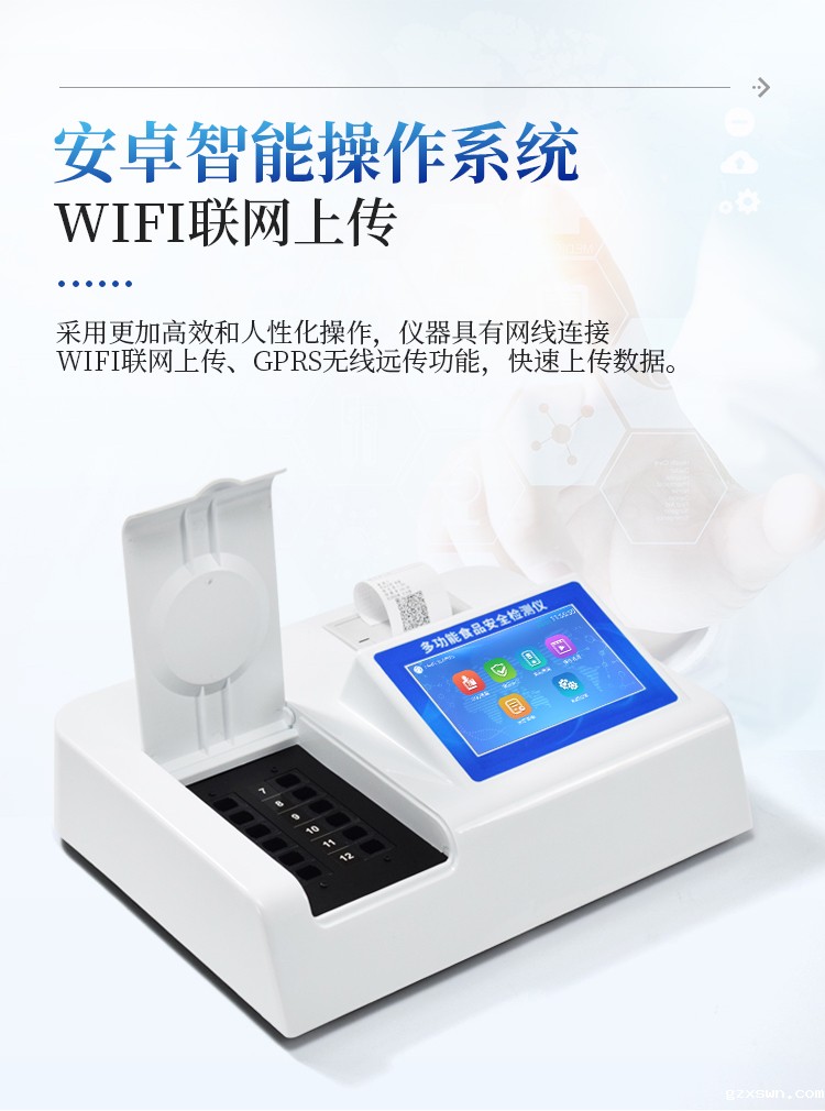 该多功能食品安全检测仪为集成化食品安全快速检测分析设备,广泛应用于食药监局、卫生部门、高教院校、科研院所、农业部门、养殖场、屠宰场、食品肉产品深加工企业、检验检疫部门等单位使用。