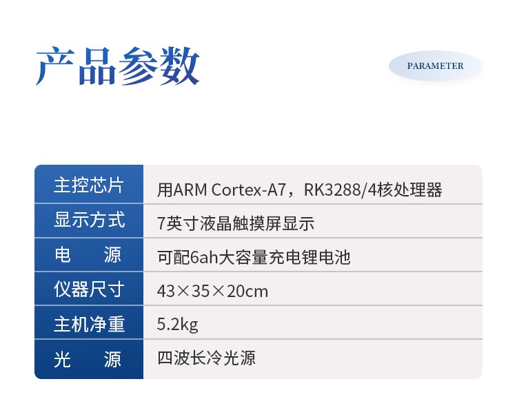 5、智能恒流稳压,光强自动校准,长时间连续工作光源无温漂现象。。