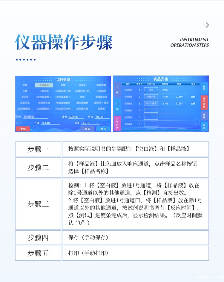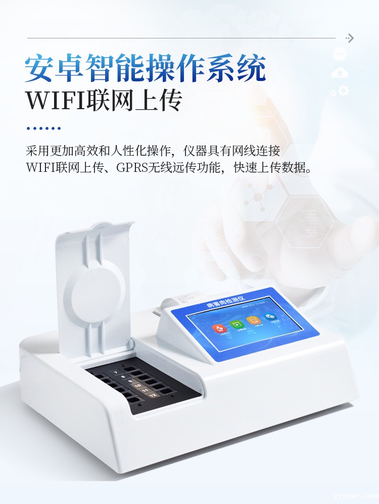 该多功能食品安全检测仪为集成一体化食品安全快速检测分析设备,广泛应用于市场监管局、食品肉产品深加工企业、学校食堂、卫生部门、畜牧部门、屠宰场、检验检疫部门等单位使用。