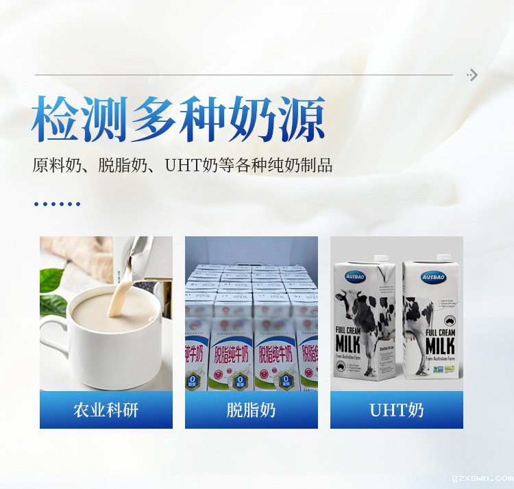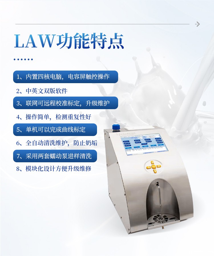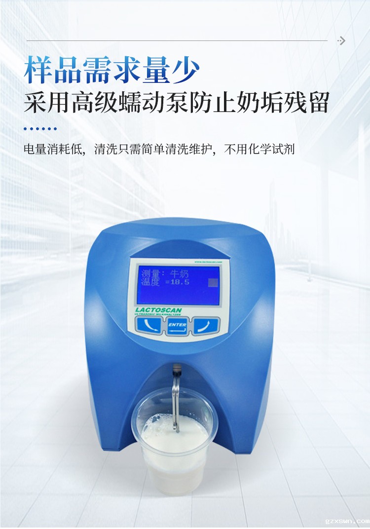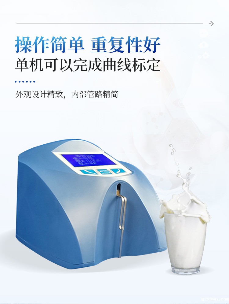 该仪器主要用于乳制品中脂肪,蛋白质、乳糖、非脂固形物、密度、掺水率、冰点、灰份、温度的测定,适用于牛奶、羊奶、UHT奶等分析,是现代牧场、鲜奶收购站和中小型乳品企业监控乳品质量极为理想的仪器。