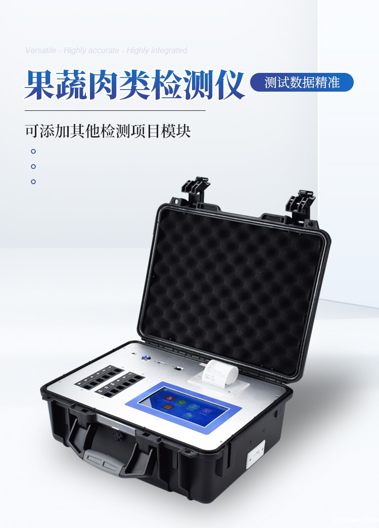 多功能果蔬肉类检测仪可快速检测几十种项目,包含各种蔬菜水果中有机磷、氨基甲酸酯类农药,病害肉诊断:肉类新鲜度、肉中组胺、挥发性盐基氮;各种肉食品中瘦肉精激素类残留等现场的定性定量检测。