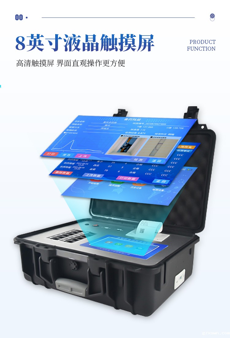 6、一体化便携式快检设备,满足现场及流动检测使用需求,能够在同一软件下实现所有检测项目的检测,并可通过同一窗口直观显示检测结果。