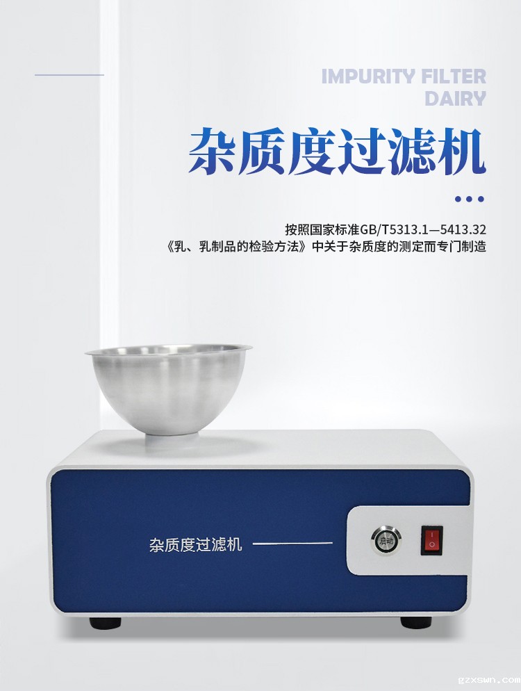 IN-ZZ杂质度过滤机是按照国家标准GB/T5313.1—5413.32《乳、乳制品的检验方法》中关于杂质度的测定而专门制造。此仪器是在第一代杂质过滤机ZA-GB1(ZA-GB1依据GB5413.30-1985),第二代杂质过滤机ZA-GB2(ZA-GB2依据GB5413.30-1997)的基础上依据GB5413.30-2016研发生产的最近第三代杂质度过滤机。HL-GB2杂质度过滤机避免了机械式ZA-GB1过滤机皮带维护麻烦,耗材贵的麻烦。也在ZA-GB2基础上改进电机,并按新标准GB5413.30-2016进行改动,更好的满足了GB5413.30-2016要求,更耐用,免维护,并配。杜绝了1代产品恼人的噪音使用更加持久耐用,并配配了全部使用配件,更全,更方便使用。