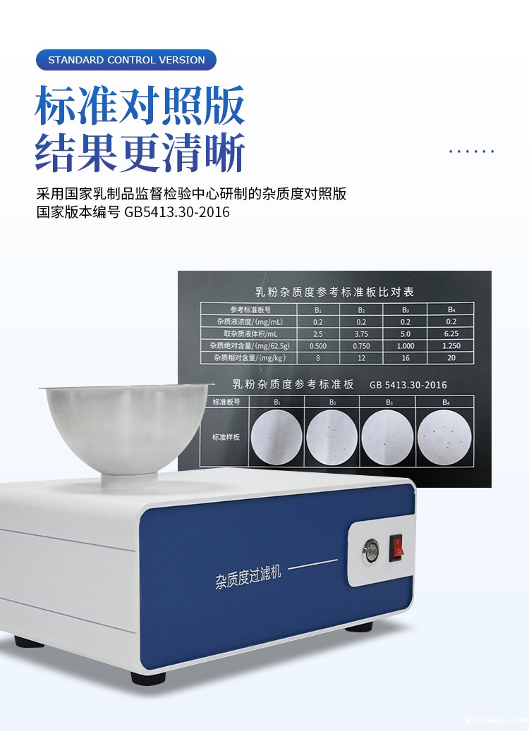 标准对照版采用国家乳制品监督检验中心研制的杂质度对照版,国家版本编号 GB5413.30-2016。