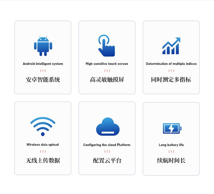 智能化:采用Android操作系统,高灵敏触摸屏。高效的人机交互,测定过程实时显示,更好的操作体验;