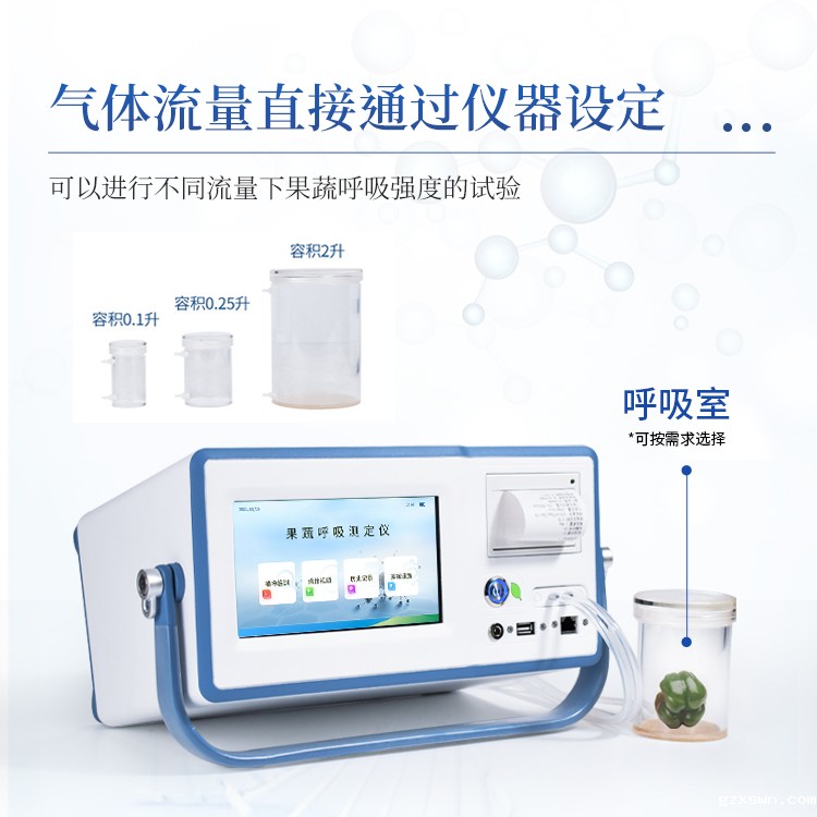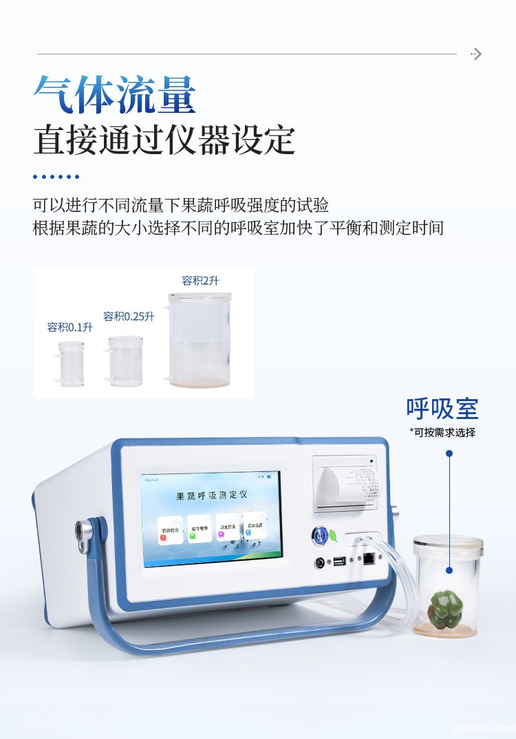 4、气体流量直接通过仪器设定,可以进行不同流量下果蔬呼吸强度的试验;