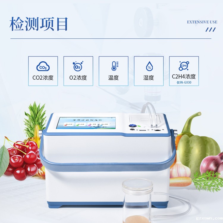 1、检测指标有二氧化碳浓度、氧气浓度、乙烯浓度、温度和湿度;