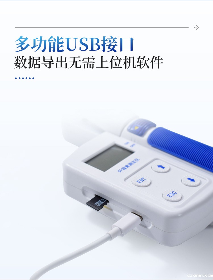 5.多功能USB接口,可实现数据导出与充电功能,可将仪器与电脑直接联机,数据导出无需上位机软件,还可选择使用内存卡直接导出数据,操作简单方便