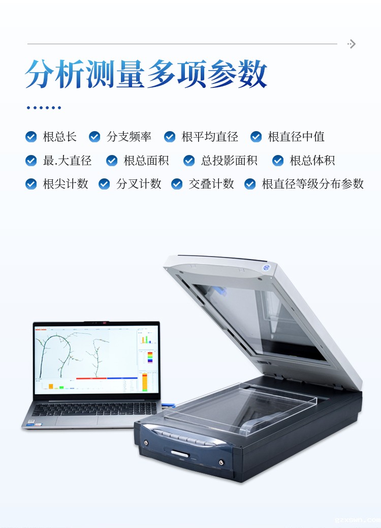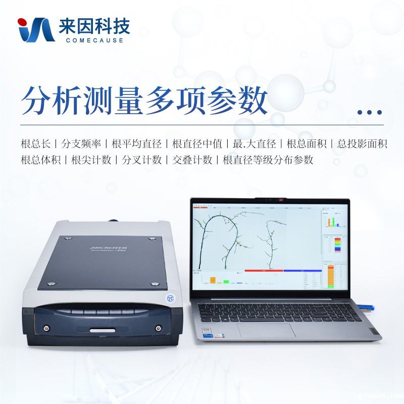 本软根系分析软件可以读取TIFF,JPEG标准格式的图像。针对获取的图像,利用插入加密狗解密的软件,对扫描获得的高质量根系图像进行分析。采用非统计学方法测量计算出交叉重叠部分根系长度、直径、面积、体积、根尖等基本的形态学参数。从而满足研究者针对植物根系不同类别和层次的研究。