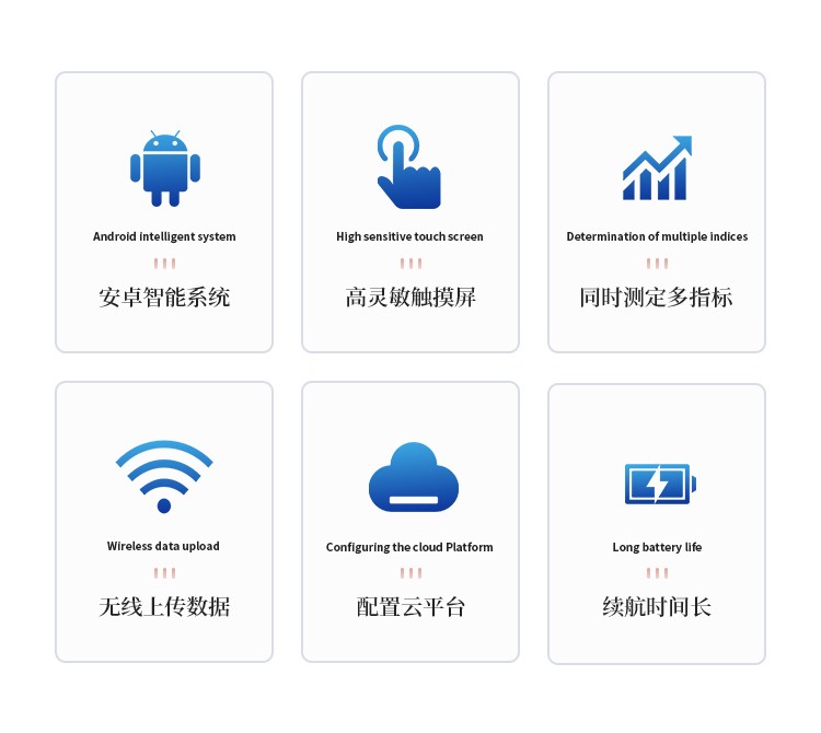 智能化:采用Android操作系统,高灵敏触摸屏。高效的人机交互,测定过程实时显示,更好的操作体验;