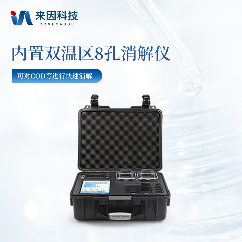 4、内置双温区8孔消解仪,左右温区独立控制,可对COD总磷总氮等进行快速消解。