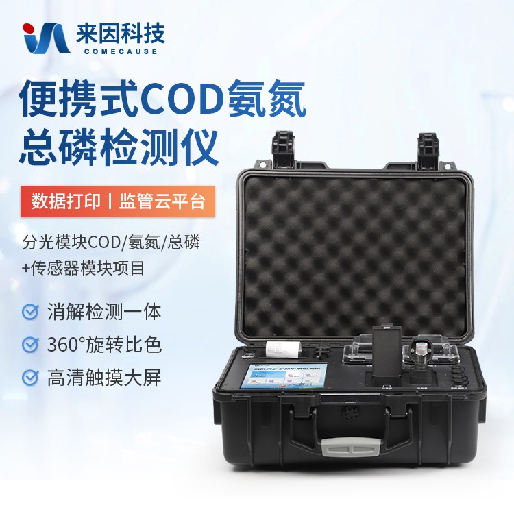 简要描述: IN-B03型便携式COD氨氮总磷检测仪采用高强度PVC工程塑料手提箱设计,消解检测一体式设计,内置大容量锂电池,便携多参数水质检测仪具有性能稳定、测量准确、测定范围广、功能强大、操作简单等特点。